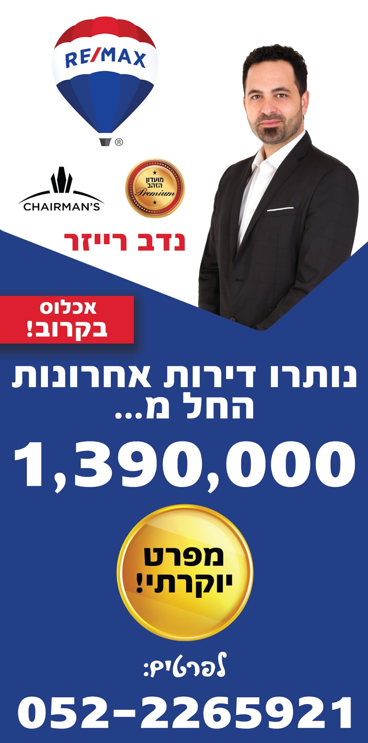 שלו פוליגל/ שלט באנר / שמשונית / כרזה למשרד תיווך – בכל גודל כולל חבלים וטבעות