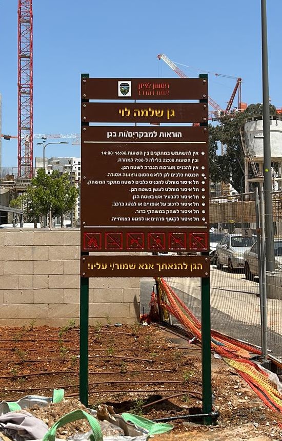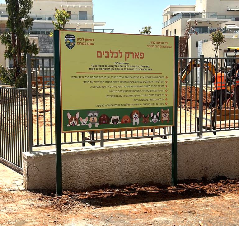 שלט עץ – חריטה בחיתוך CNC מילוי בצבע ועמודי ברזל